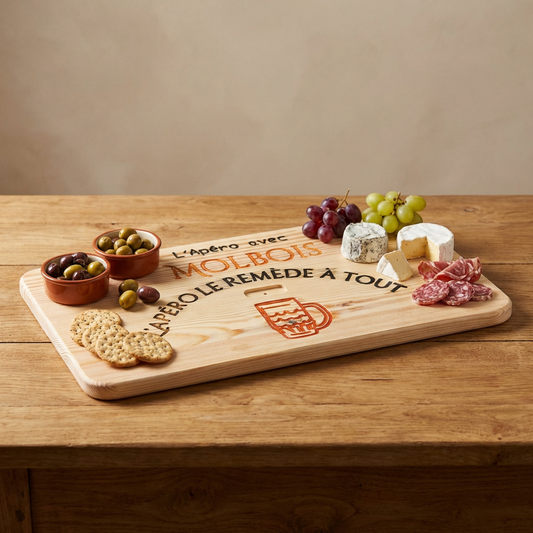 “La qualité du bois est exceptionnelle, on sent vraiment le travail artisanal. La gravure est parfaite, c’est devenu la pièce maîtresse de nos apéros.”